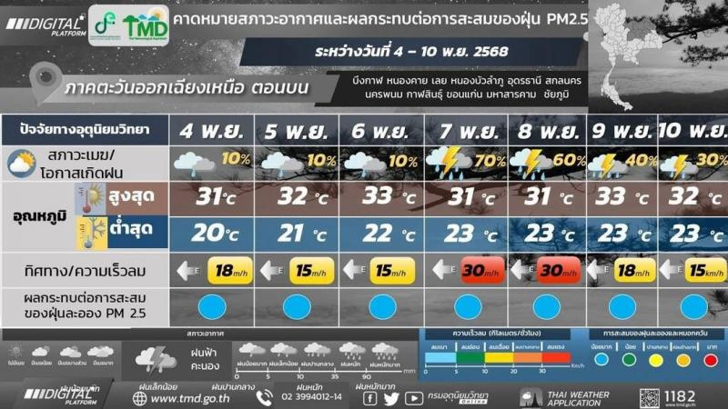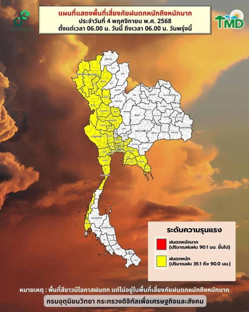 พยากรณ์อากาศประจำวัน วันที่ 4 พฤศจิกายน 2568