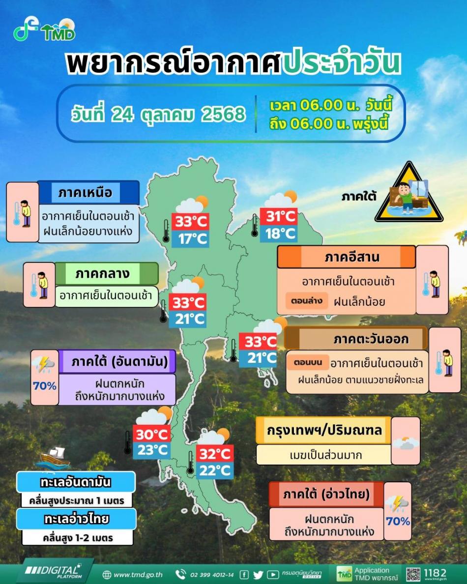 พยากรณ์อากาศประจำวัน วันที่ 24 ตุลาคม 2568 [24 ตุลาคม 2568]