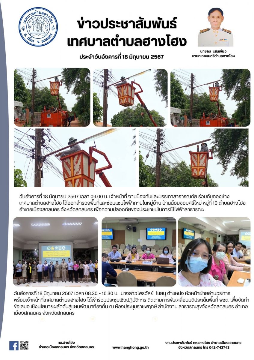 ข่าวประชาสัมพันธ์ เทศบาลตำบลฮางโฮง ประจำวันที่ 18 มิถุนายน 2567