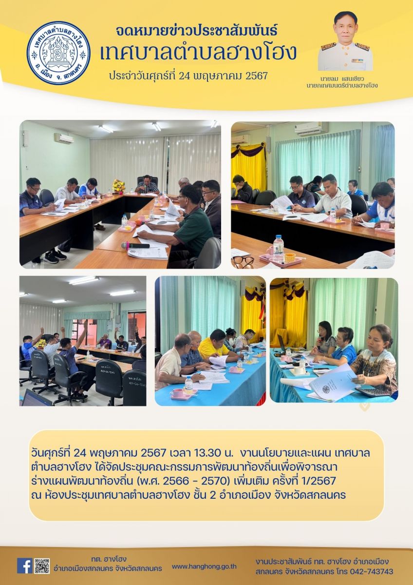 ข่าวประชาสัมพันธ์ เทศบาลตำบลฮางโฮง ประจำวันที่ 24 พฤษภาคม 2567