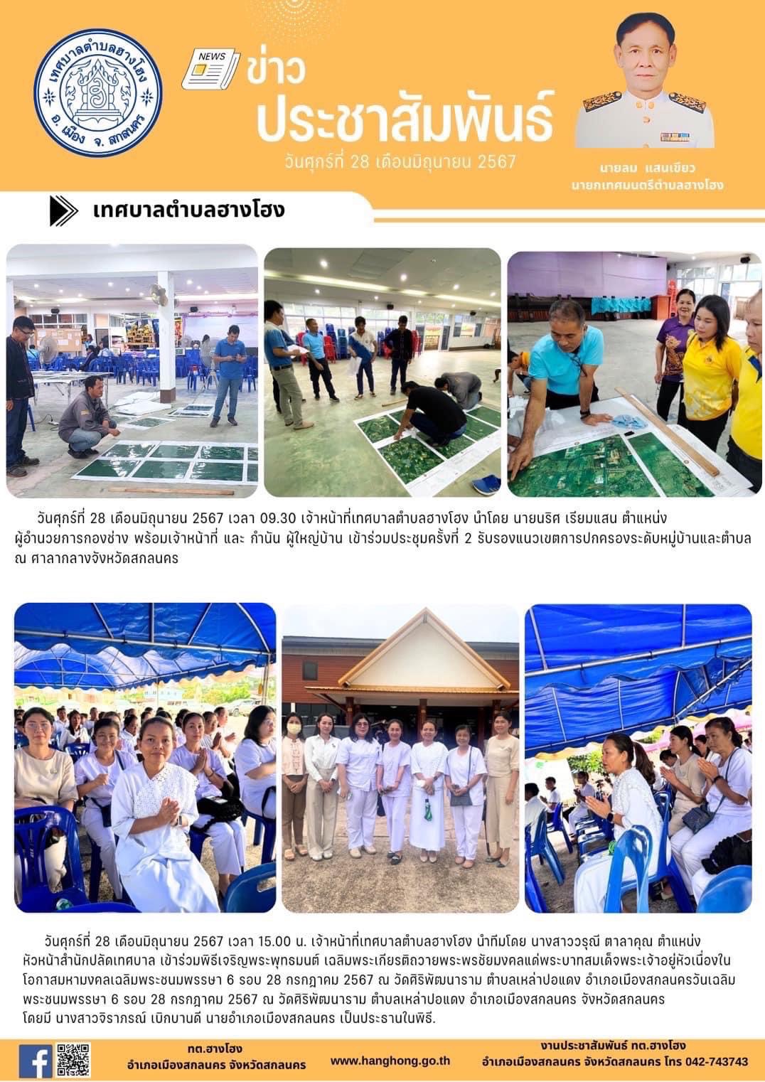 ข่าวประชาสัมพันธ์ เทศบาลตำบลฮางโฮง ประจำวันที่ 28 มิถุนายน 2567