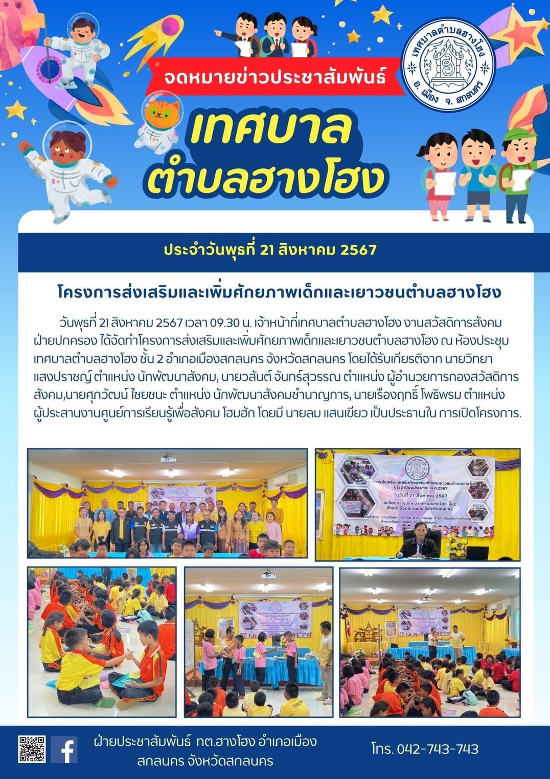 ข่าวประชาสัมพันธ์ เทศบาลตำบลฮางโฮง ประจำวันที่ 21สิงหาคม 2567