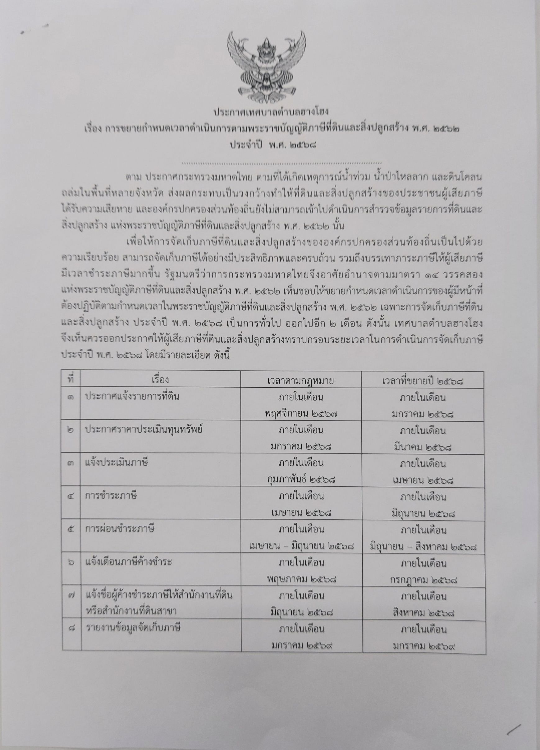 การขยายกำหนดเวลาดำเนินการตามพระราชบัญญัติภาษีที่ดินและสิ่งปลูกสร้าง