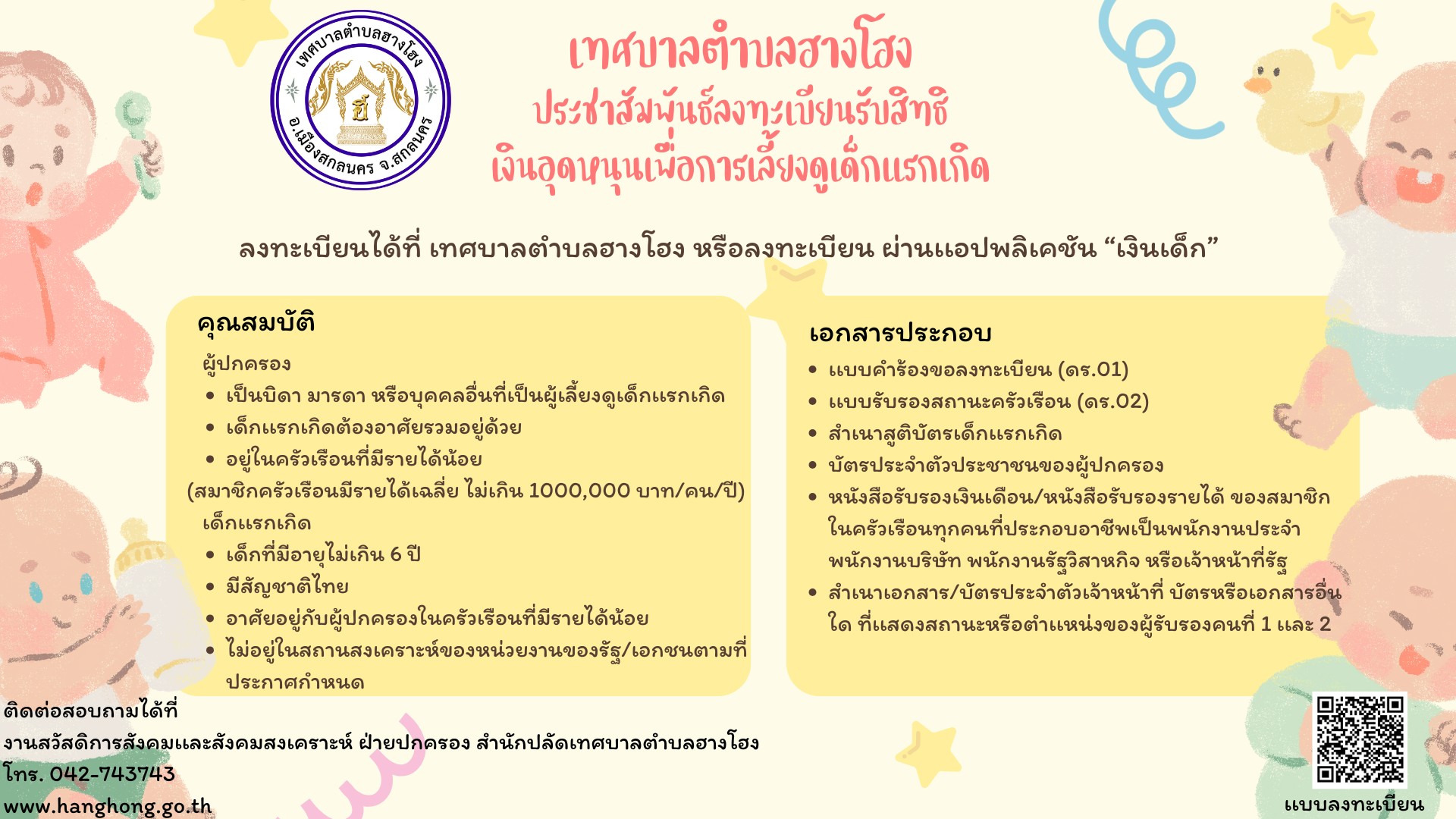 รายละเอียด : งานสวัสดิการสังคมและสังคมสงเคราะห์ ฝ่ายปกครอง สำนักปลัดเทศบาลตำบลฮางโฮง จะดำเนินการตามโครงการรับลงทะเบียนเคลื่อนที่ ผู้สูงอายุ ผู้พิการ ผู้ป่วยเอดส์ ประจำปีงบประมาณ พ.ศ. 2569 (การยืนยันสิทธิรับเบี้ยยังชีพผู้สูงอายุ ของเทศบาลตำบลฮางโฮง เพื่อรับเงินเบี้ยยังชีพ ในปีงบประมาณ พ.ศ. 2569 และ ในปีงบประมาณ พ.ศ. 2570) ในระหว่างวันที่ 3 - 7 พฤศจิกายน 2568 เพื่อลดขั้นตอนการติดต่อราชการของประชาชน ให้ประชาชนได้รับความสะดวกรวดเร็วในการเข้าถึงบริการของหน่วยงาน