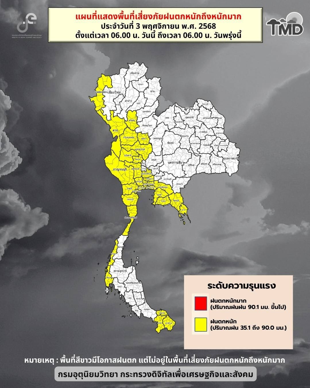 พยากรณ์อากาศประจำวัน วันที่ 3 พฤศจิกายน 2568